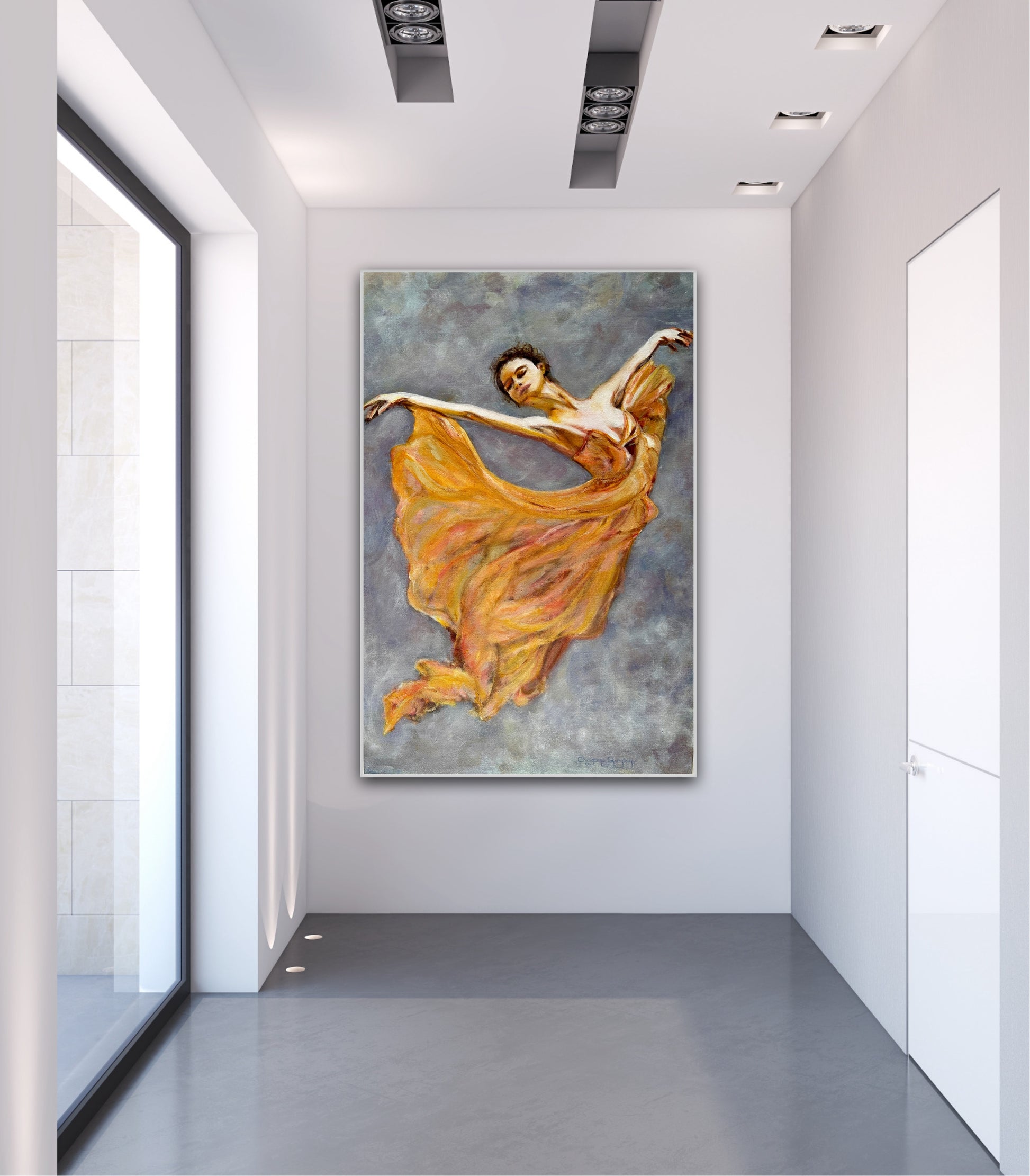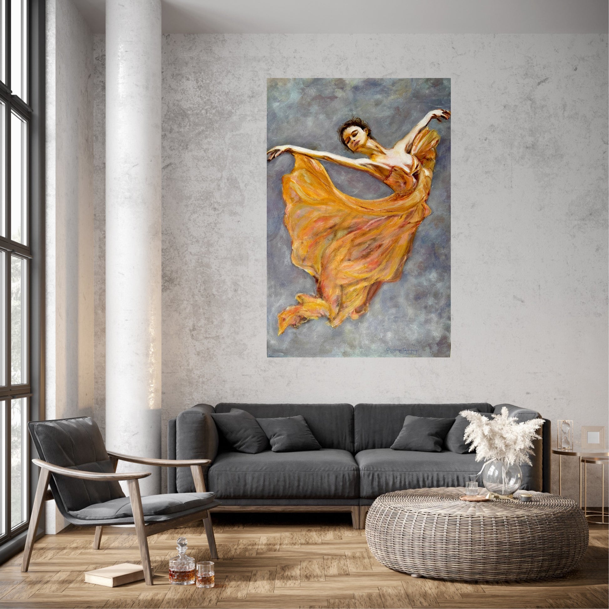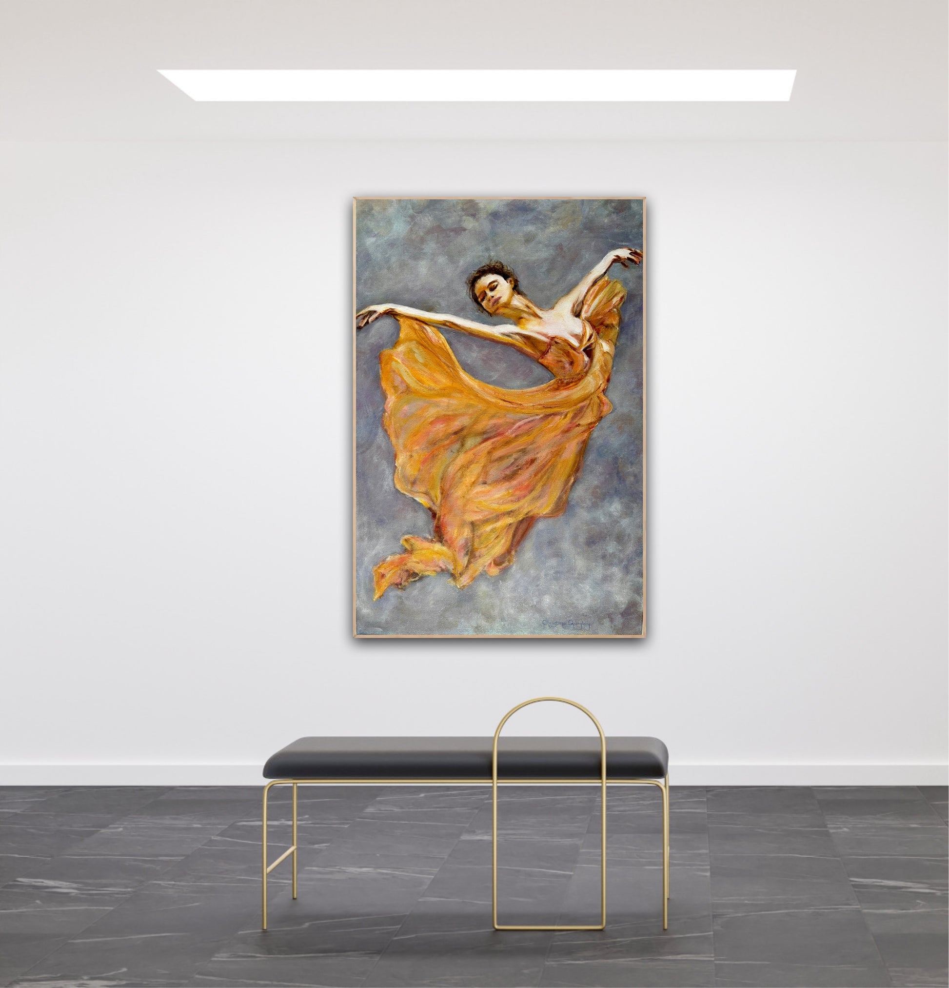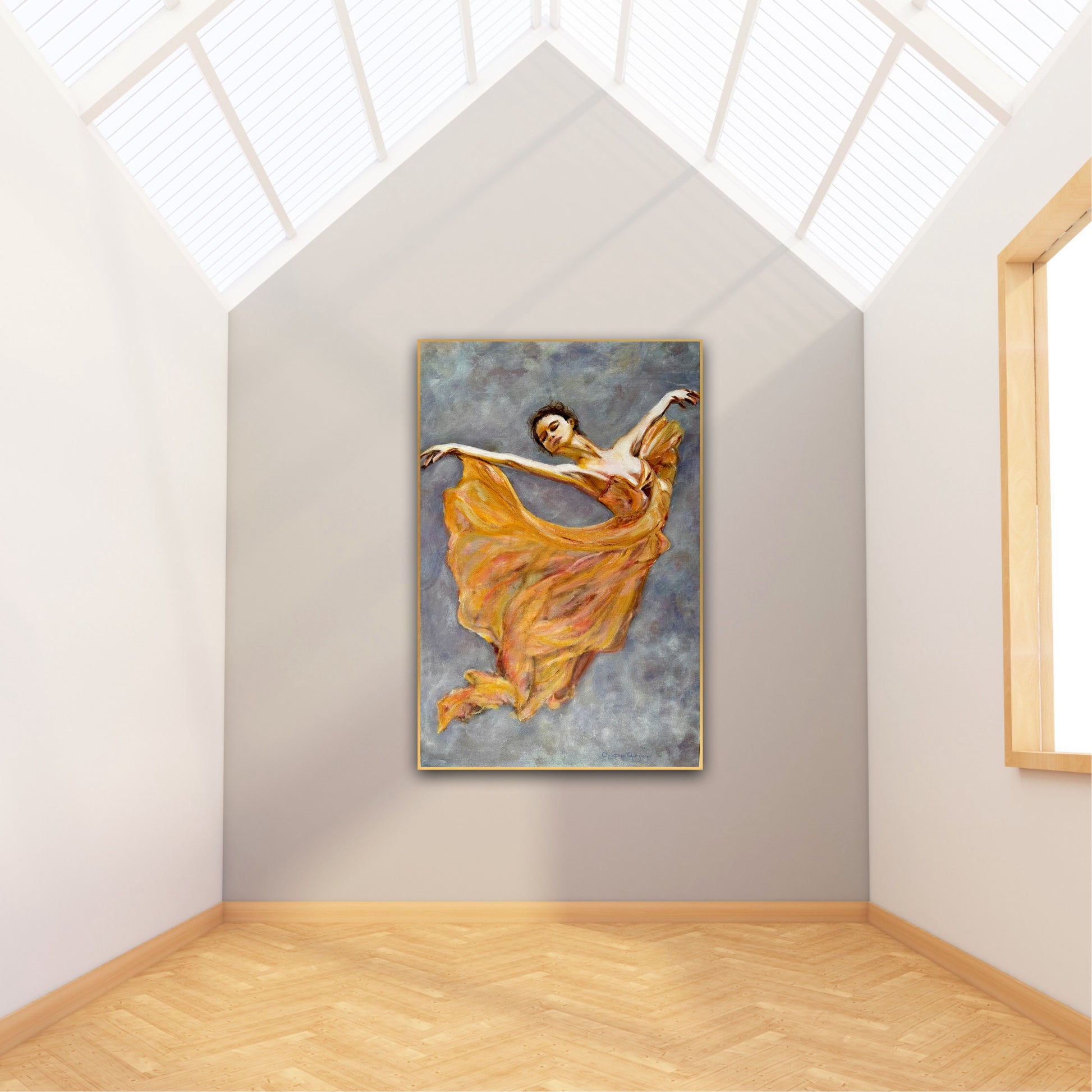 She glides through the air with freedom, transcending limitations and expressing true human creativity and beauty.
